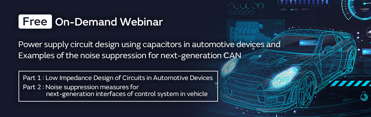 Some examples of power supply circuit designs that make use of capacitors in automotive devices, and noise suppression measures for next-generation CAN