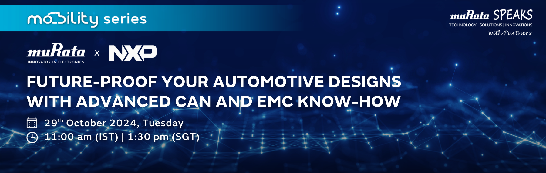 Join Murata and NXP for an exclusive webinar to unravel the complexities of automotive communication interfaces, such as CAN (Controller Area Network) and other essential protocols. Delve into the intricacies of electromagnetic compatibility (EMC), discover effective countermeasures to mitigate EMC issues, and propose robust and reliable designs.