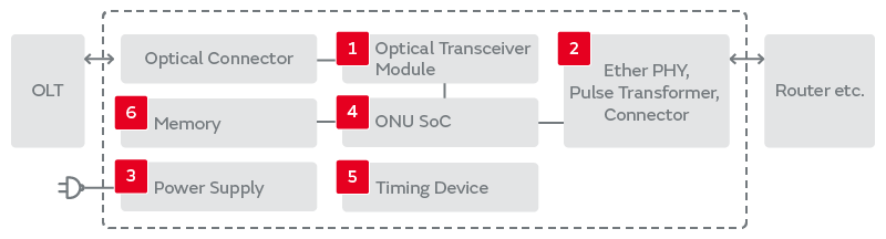 介绍构成G-PON(Gigabit passive optical network:千兆无源光网络)的OLT(Optical Line Terminal:光线路终端)和ONU(Optical Network Unit:光网络单元)中用于ONU的产品阵容。