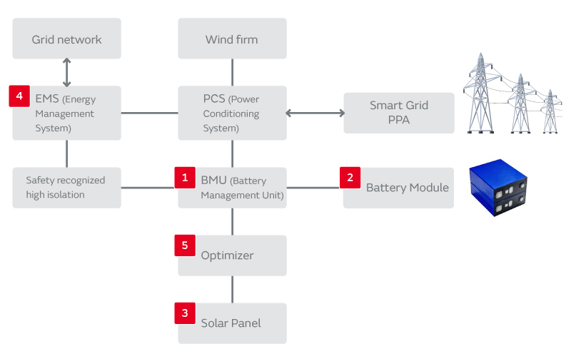 智能电网是一套利用智能电表等信息通信设备将每个家庭和事业所等的电力需求实时可视化,并能自动控制所需电力供应并避免出现电力过剩和短缺的系统。 在智能电网中,实时准确掌握分布式可再生能源发电设施的发电量和因日常生活及业务而消耗的电量,并通过对多台分布式ESS的充放电进行管理来在两者之间获取平衡。 利用IoT技术将电网内的多个发电设备和ESS视为一个发电厂并控制供电量的技术称为虚拟电厂(Virtual Power Plant:VPP)。