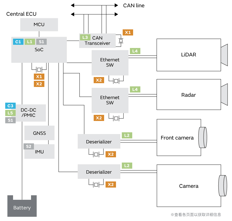 介绍用于汽车ADAS ECU(高级驾驶辅助系统ECU)的产品阵容。