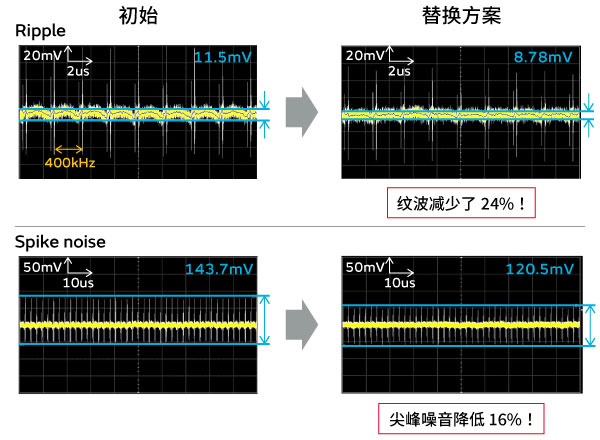 纹波改善了24%,尖峰噪声改善了16%!