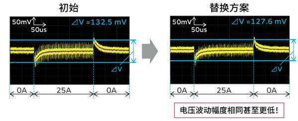 将输出电容器从聚合物电容器替换为MLCC,如下所示。 更换时,相位补偿电路常数也会根据电源特性进行调整。(见图4)