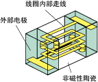 所谓积层结构,是将陶瓷材料及线圈导体层压成一体的单片结构。与绕线结构相比,能够实现小型化、低成本化。 虽然Q值比绕线结构要低,但L值偏差、额定电流、大小、价格等整体的平衡性较好,用途也较为广泛。 适用于移动通信设备的RF电路的耦合、扼流以及共振等各类用途。