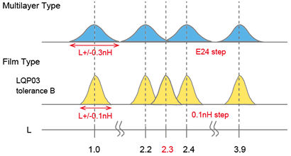 叠层型构造虽有3种结构且Q值也较低,但由于其L值偏差及规格、价格等整体的平衡性较好,因此被广泛使用于RF的匹配电路、共振电路及扼流电路中。