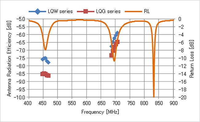 尤其是MDTV (ISDB-T/CMMB/DVB-H) 用天线,因为使用UHF频段 (470-800MHz) ,所以天线很难实现小型化。可以通过用电感器调整谐振频率的方法实现小型化,但是需要选定考虑到天线特性恶化的零件。此外,已开始使用的LTE也要求天线能够涵盖700MHz频段和多个波频带。尤为引人注目的一项技术是切换方式,即用开关等切换1个天线单元,从而改变频率。该切换方式有时也采用集中常数 (电感器、电容器) ,与开关一起调整频率。