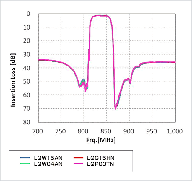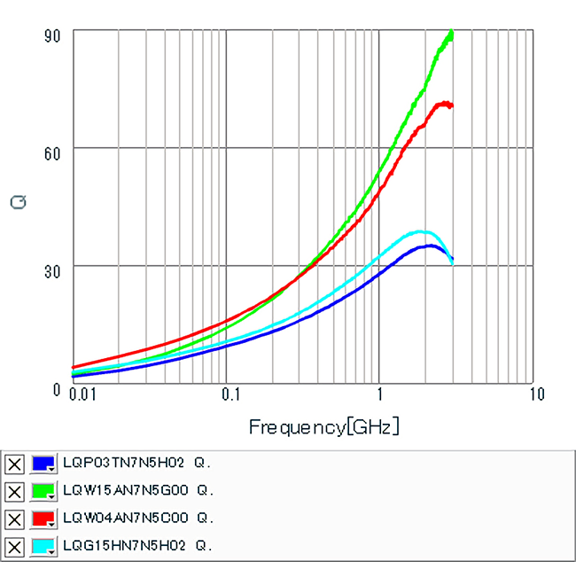 根据以上情况,有必要对SAW滤波器的整合回路RF电感的Q特性、偏差值、尺寸、成本等方面,进行比较讨论之后做出选择。在贴装空间有剩余的情况下,Q值偏高的卷线电感LQW15/LQW04为理想的选择。此外,贴装空间有所限制的情况下,小尺寸0603、拥有较高Q值的LQP03HQ/LQP03TN_02为理想的选择。