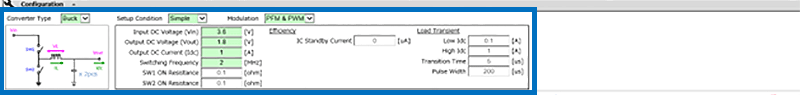 在DC-DC转换器的设定表格中输入本事例的工作条件。
