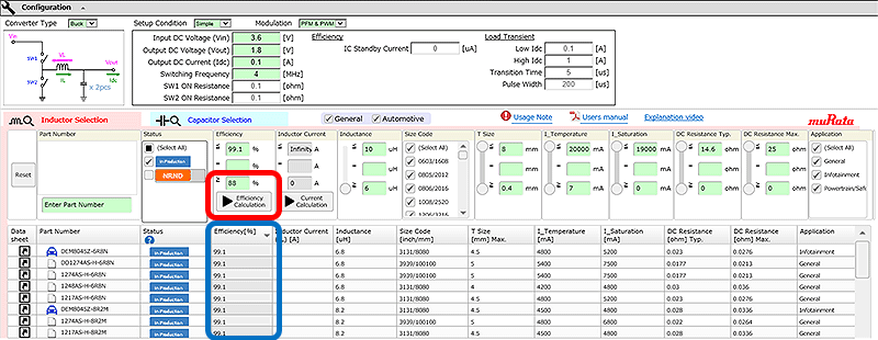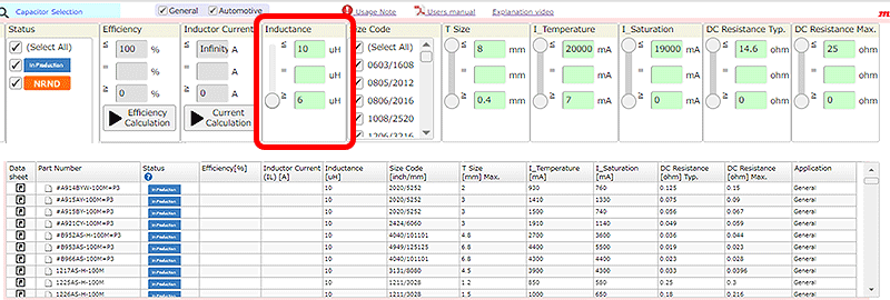 通过使用本工具,不需要通过实际设备或仿真对所有候选电感器进行评估,就能在考虑主要参数后选择功率电感器,可以大幅减少设计工时。