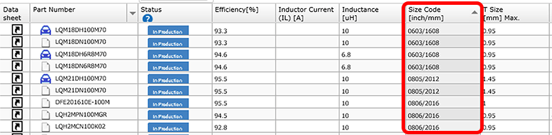 最后,通过按尺寸排序将小型功率电感器显示在顶部。