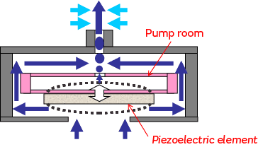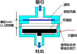 • 微型风扇能吸/吐空气,泵室中可能会堆积空气中的尘埃,工作中会受到尘埃的影响。请选择在无尘的环境下使用,或使用能过滤亚微粒的滤网以预防吸入尘埃。(※使用滤网并不能全然保证不会降低微型风扇的性能。)
