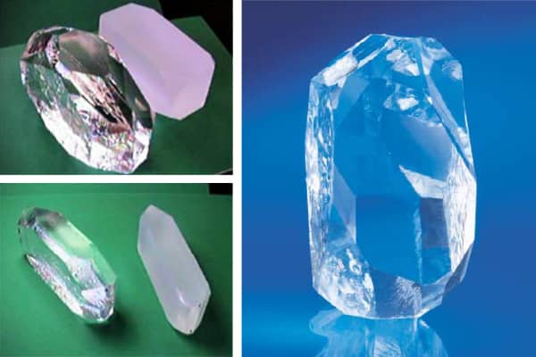 天然晶体形状不定,难以处理。人造晶体是为了容易处理而通过工业培育形成的形状固定的晶体。