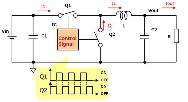 通过图示和计算式讲解降压型DC-DC转换器的工作原理。