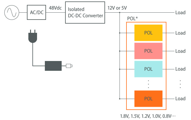 POL的意思是紧挨着微处理器、DSP、FPGA、ASIC之类LSI(Large-Scale Integration:大规模集成)配置的DC-DC转换器。