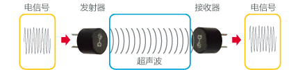 压电陶瓷具有根据电压方向 <= 陶瓷膨胀 => => 陶瓷收缩 <= 的特征。 通过反复膨胀收缩让空气振动并发出超声波。