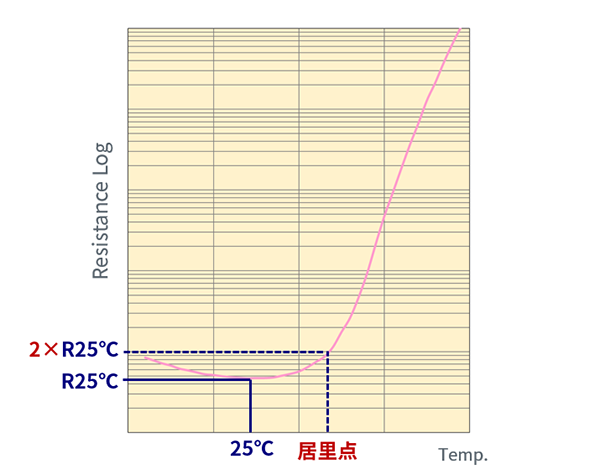 居里温度(C.P.)即阻值为25°C时的阻值的两倍时所对应的温度。 室温至居里点的范围内,电阻值稍有降低但基本维持一定。当环境温度超过居里点,电阻值对数增长。