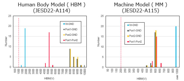 Charge Devise Model (CDM) : Vt,GND,Port1,Port2 > 1000V