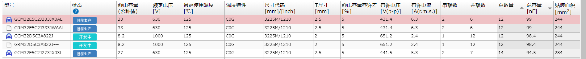 显示用于高频高压电路的精良电容器的型号
