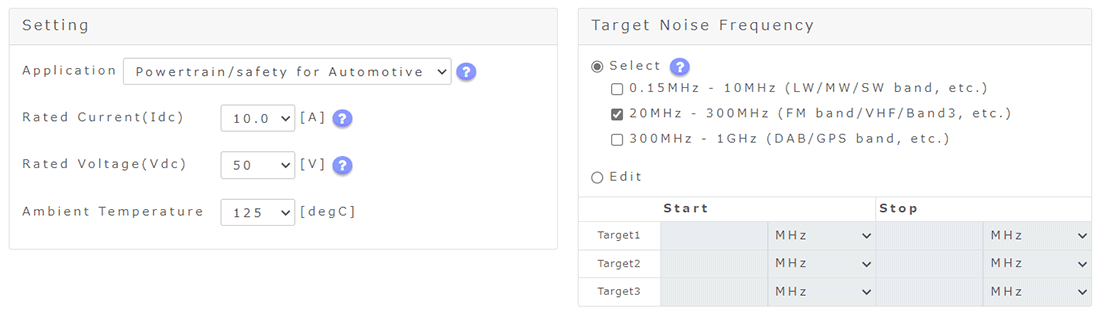 根据电路条件和要降低噪声的频段自动生成与其相匹配的噪声滤波器